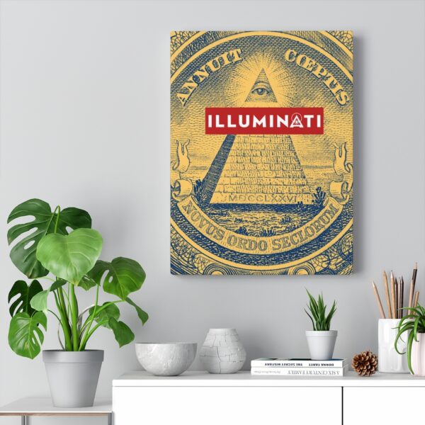 This item is a perfect addition to any home, office, or meeting space. The canvas is a finely textured, artist-grade cotton substrate which displays Illuminati symbols with outstanding clarity and detail.